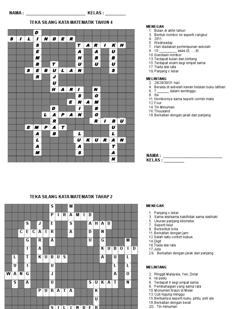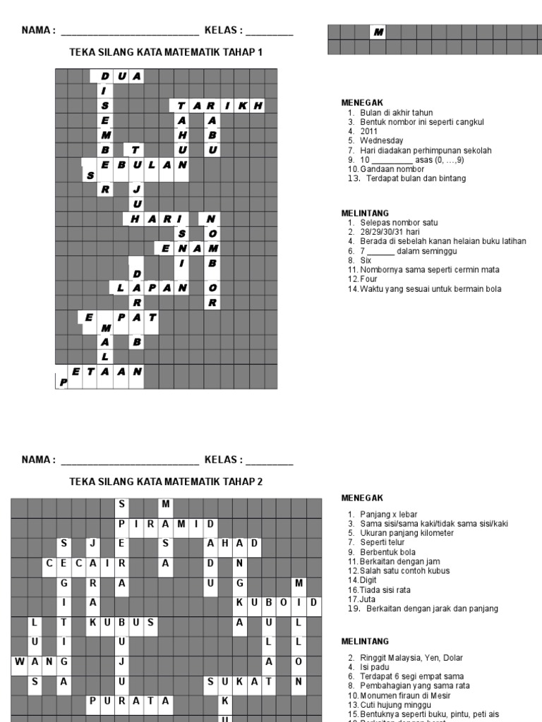 Kali ini kami ingin war-warkan bahawa pihak kami telah publishkan satu bahan yang sangat bermakna untuk ibubapa download iaitu Contoh Jawapan Teka Silang Kata. Bahasa melayu bm bahasa inggeris english matematik mathematics sains science bahasa cina pendidikan islam pendidikan jasmani dan kesihatan pendidikan moral pendidikan muzik pendidikan seni visual reka bentuk dan teknologi sejarah teknologi ma. Bermacam jawapan teka silang kata matematik tahap 1 yang sangat baik di ambil dari kredit berikut.